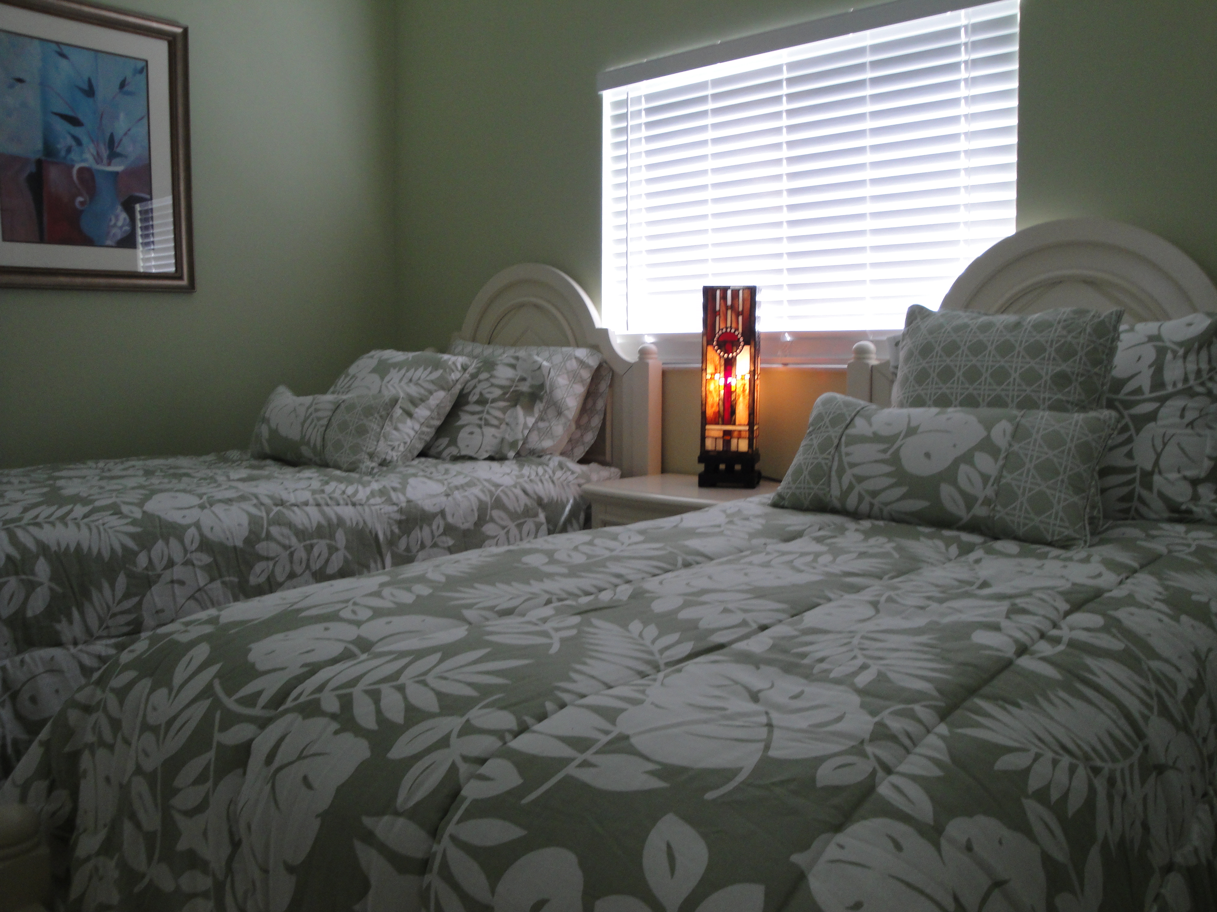 Decorated in true Floridian style, this bright and cheery room features two high rise single beds with extra thick and comfortable mattresses. The emphasis is on light and space and this very cozy bedroom seems to be everyone's favorite.